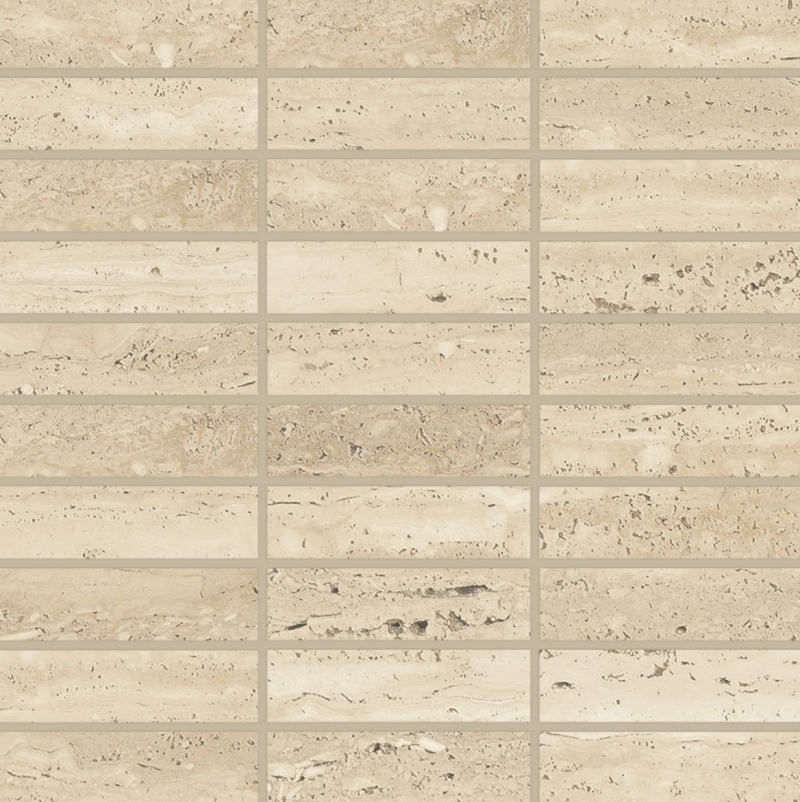 Sensi Roma brings the Italian esthetic to your home. Shown here in 1″ x 4″ mosaic, Satin finish, Cream.