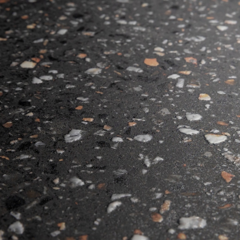 Mystère is a fun, practical offering suitable for indoor and outdoor spaces. Shown here in 24″ x 24″ Structured Porcelain Tile in Black.