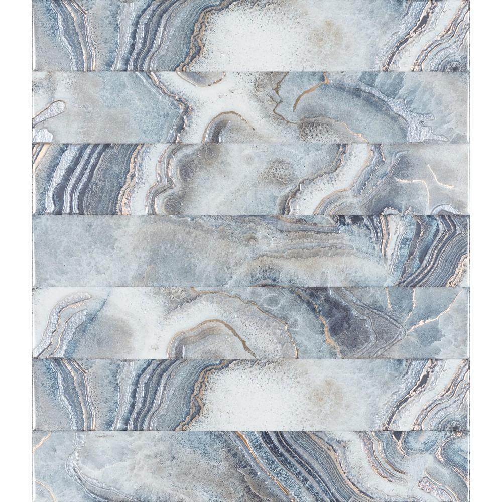 Infuse a room with a touch of flair using this replicated? blue onyx tile with a touch of real gold. Its plank shape adds a striking and unique element.?