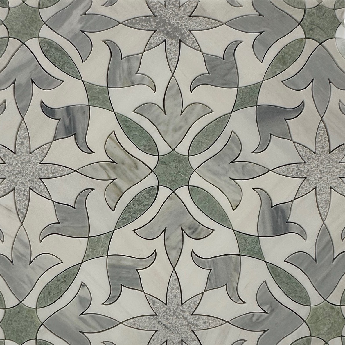 The invention of the waterjet tool made possible a new way to make marble and glass mosaics. Not only could the “blade” make more precise cuts allowing pieces to fit tightly but it reduced waste and allowed for more intricate designs. That was the 1980’s and exquisite mosaic offerings exploded. Now the only limit to creating gorgeous mosaics was the human imagination.